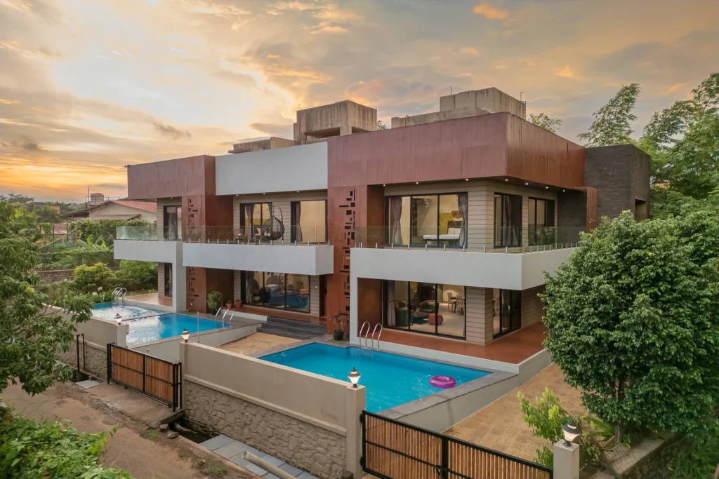 Aquavista is a 3BHK private villa in Lonavala with a private pool. Perfect for small families, the home is well-furnished with modern amenities, ensuite bedrooms, and select rooms featuring balconies. This is a pure veg villa in Lonavala, catering delicious vegetarian delicacies. Located near Jayanand Dham, this holiday homes gives a comfortable space for guests with everything they need for a nice weekend getaway.
