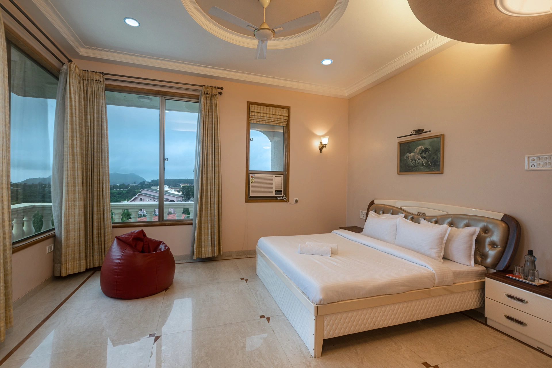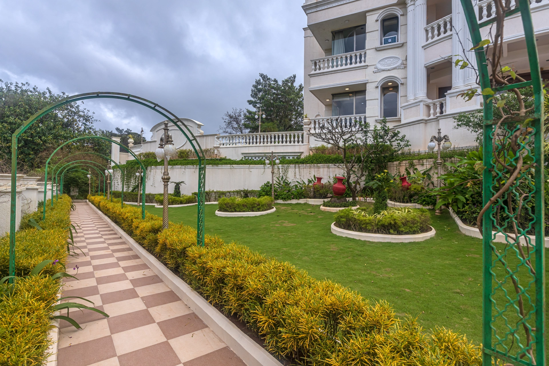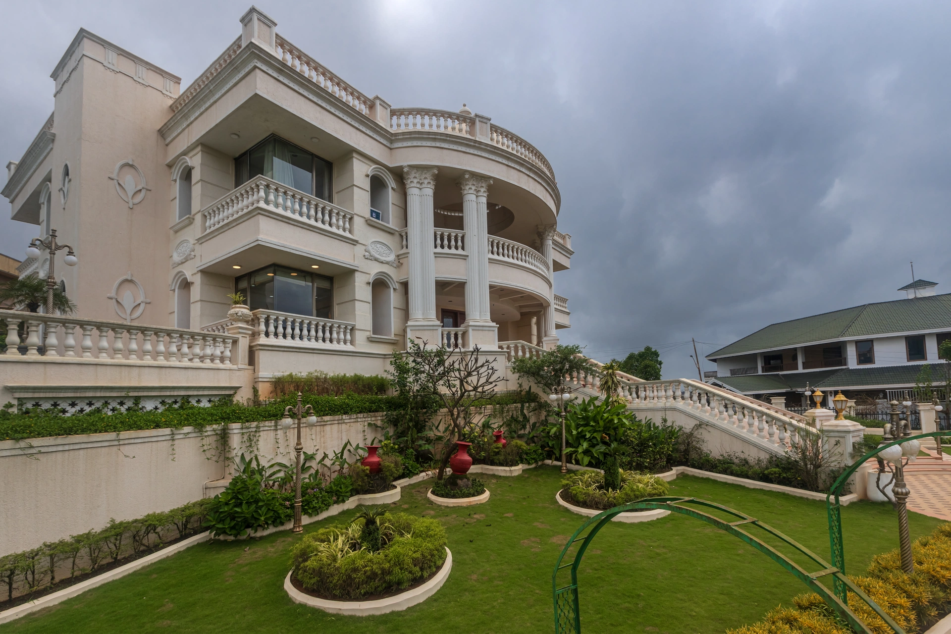 A pure veg villa in Lonavala, Stayscape Mansion charms with its palatial design. A grand staircase entrance, open spaces, two living rooms, plush furnishings and art on the bedroom walls, this villa sets the tone for grandeur in every corner. The interiors beautifully offer a mix of royal and modern design. A swimming pool with a lion-head spout, a jacuzzi, sprawling lawns on either side of the entrance, and views of the mountain valleys in the surroundings from the terrace, spend a luxurious getaway in Lonavala at this elite private residence.