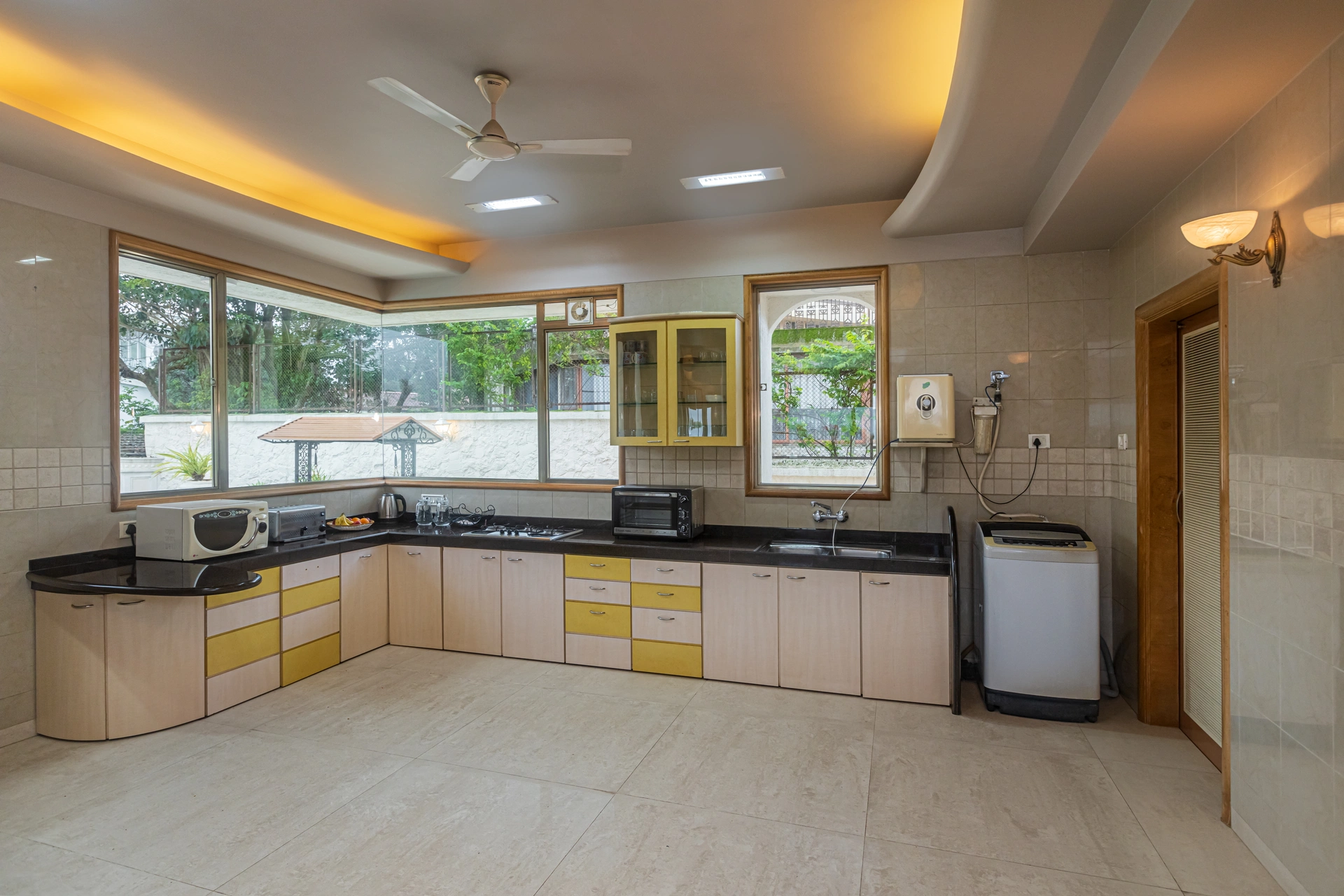 This luxury villa in Lonavala has a projector system along with a large flat-screen TV in the living area. You can host movie nights or watch reruns of your favourite series along with your friends and family.