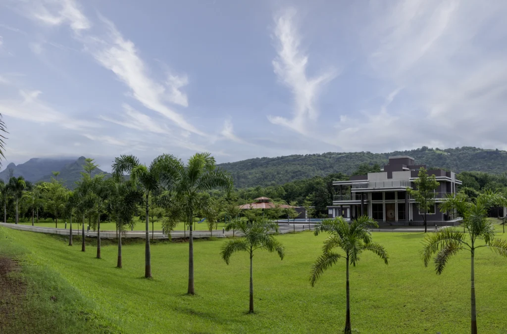 Large lawn space suitable for hosting outdoor events in Karjat.