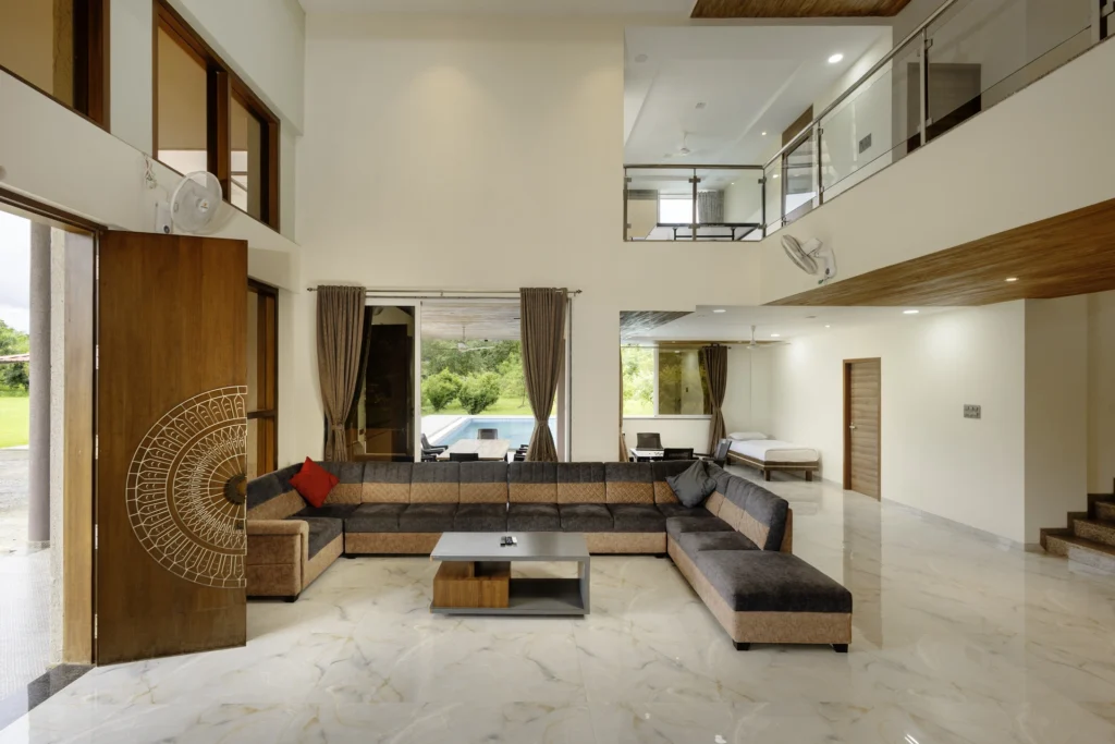 This pet-friendly villa near Mumbai comes with expansive lawns where your furry companions can roam free and soak in the outdoors. Designed to host not just families but also large gatherings, the villa comfortably accommodates up to 30–35 guests. Whether it’s an intimate getaway, a grand celebration, or a corporate retreat, Shreeji Farms makes the perfect villa for events and celebrations near Mumbai and Pune. It is a 5-minute drive away from Karjat station.