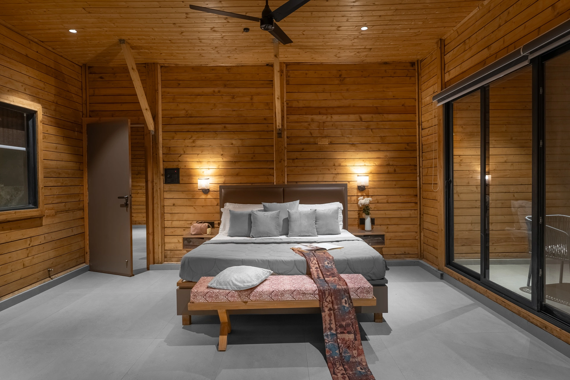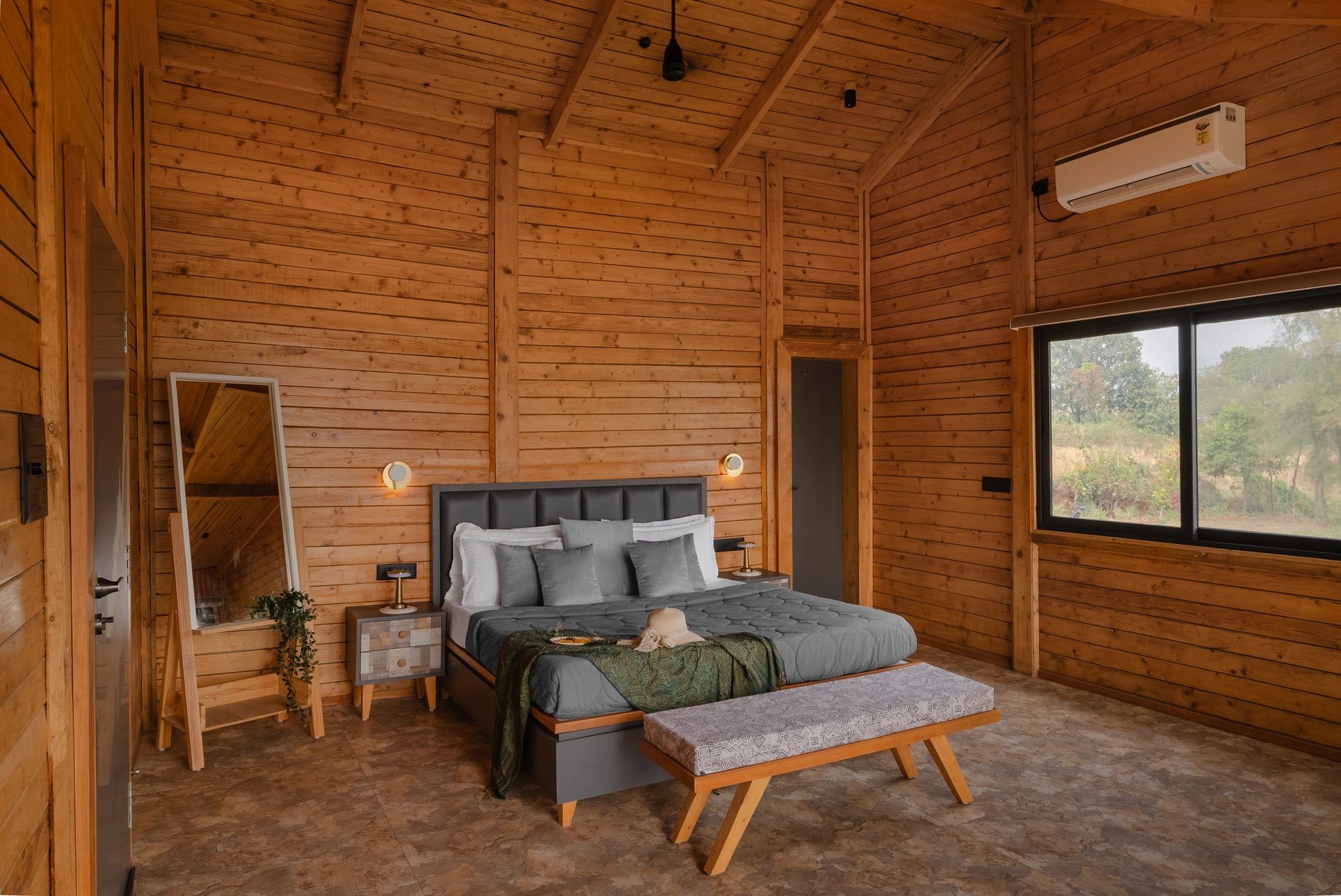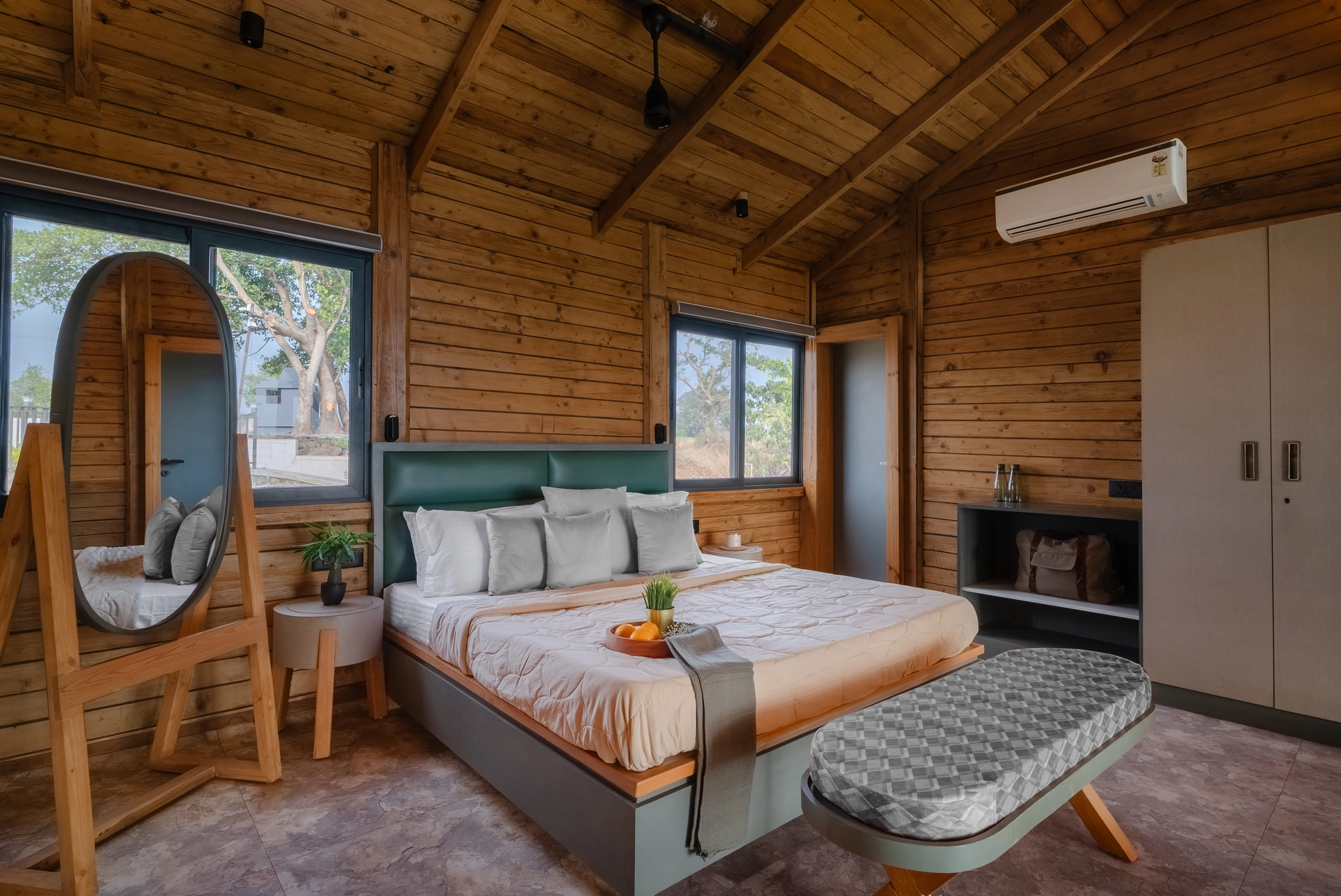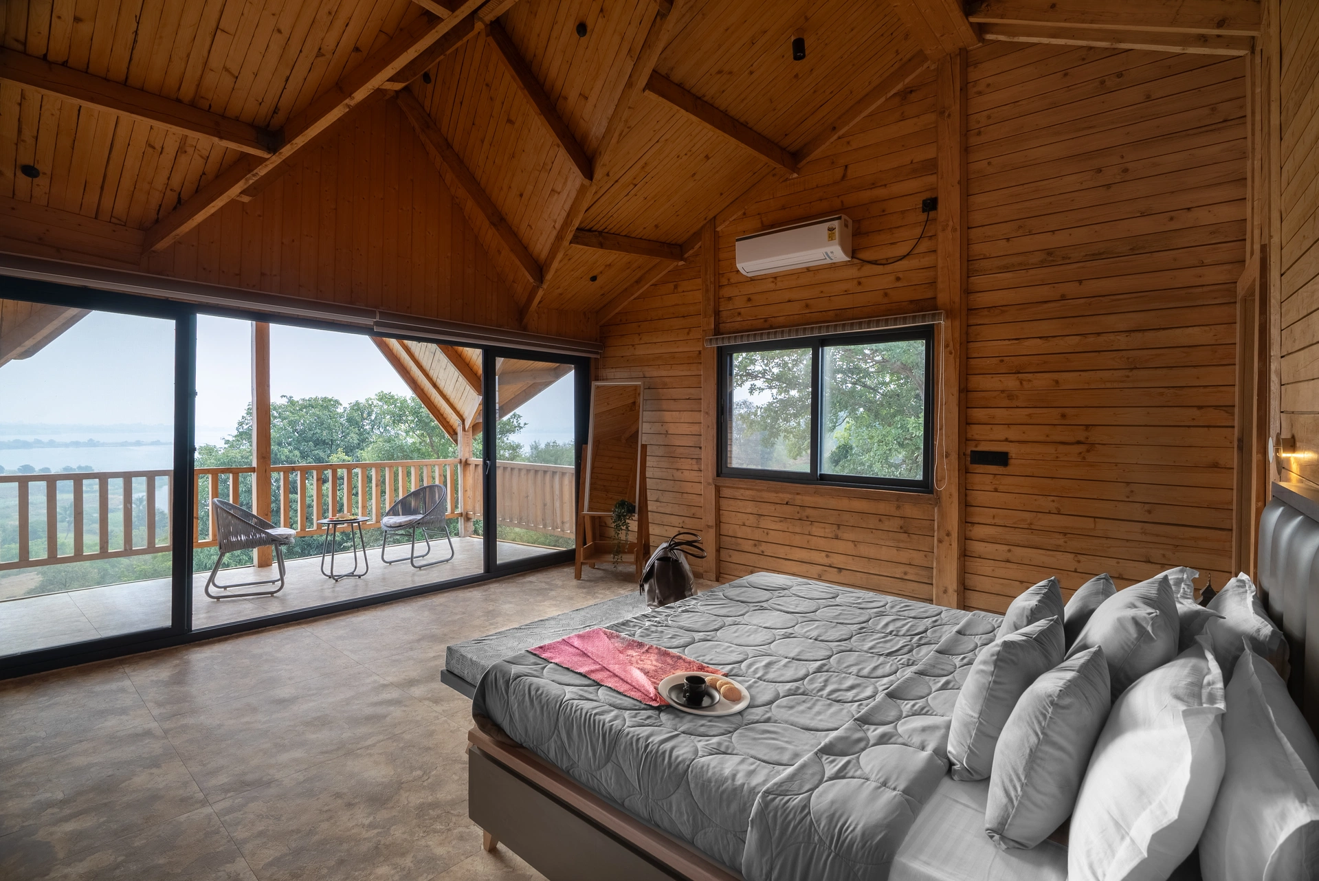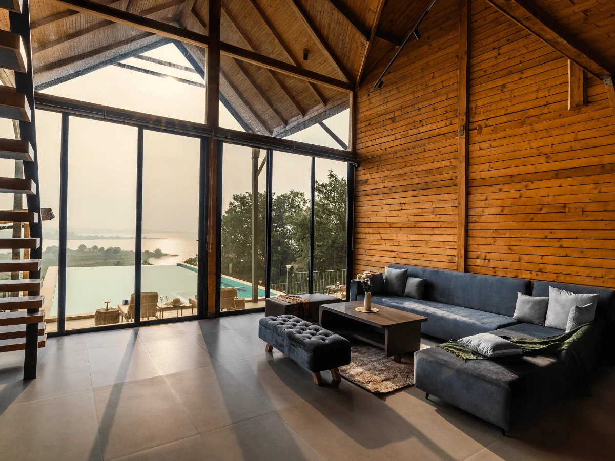 - The suite in this Igatpuri villa has a stylish living room, and the bedroom has a large window facing the lake and lawn view.
