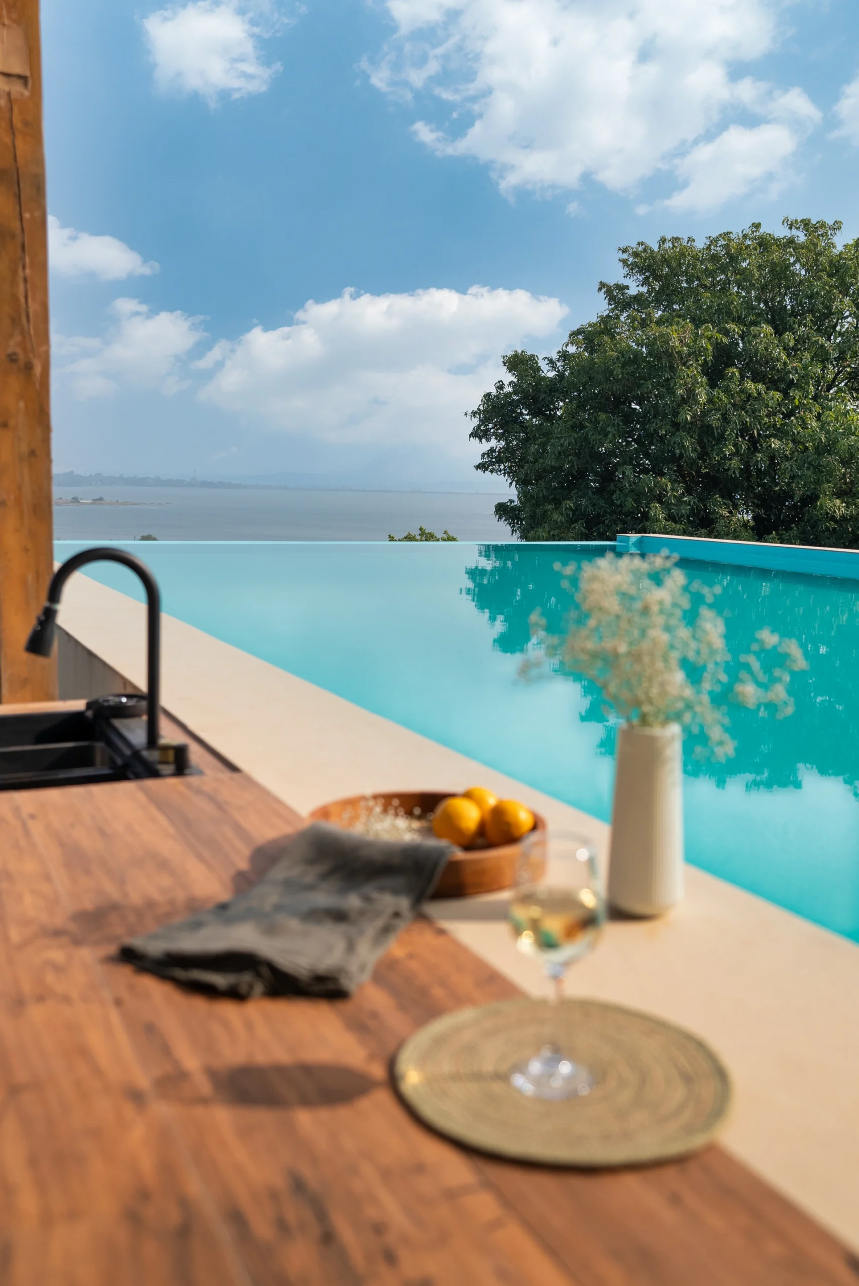 Dip your feet in the pool, enjoy cocktails by the bar counter and marvel at the beautiful lakeside views throughout your sta