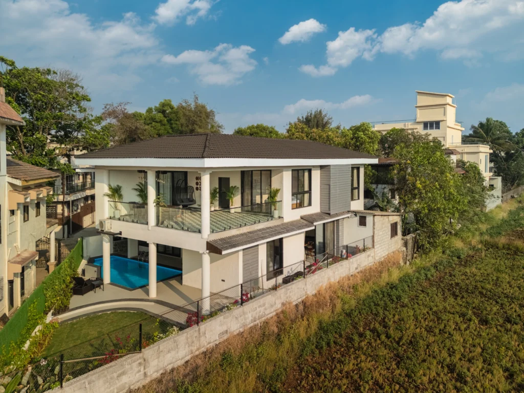 Stay at a stunning private glasshouse-style villa in Lonavala, where tall glass windows in the living areas and bedrooms create a sophisticated feel. This 5-bedroom retreat, with a spacious family room, opens onto a terrace with picturesque views. The interiors are sleek, stylish and equipped with smart appliances, setting the vibe for a luxurious stay in Lonavala. The covered pool is another factor of indulgence here, with no worry of weather being too sunny or rainy, you can still have your pool time.