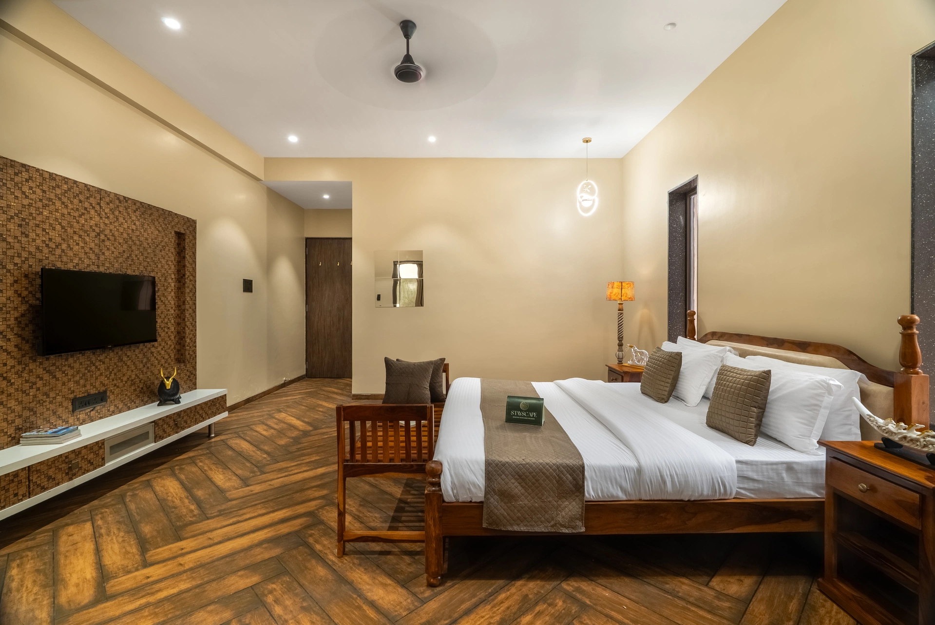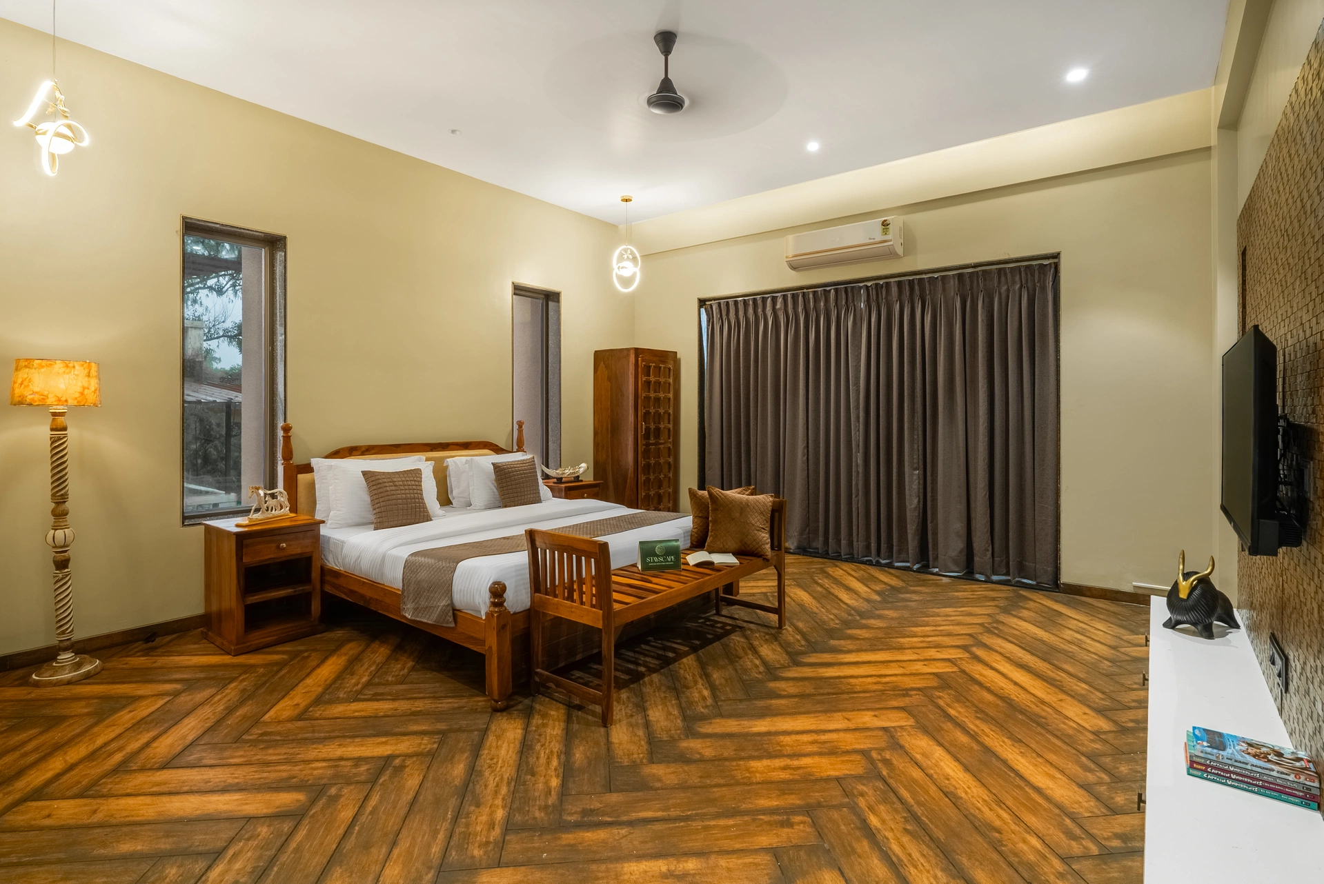 Casa Tropica is a beautiful holiday home designed for maximum comfort and entertainment on your weekend getaways. Spread across two floors, it features five spacious bedrooms, a dedicated entertainment zone with indoor games and a movie-night setup. A large swimming pool adds to the fun, making this ideal venue for family vacations or to take one-day corporate retreats in Lonavala. It can accommodate at least 20-25 guests.