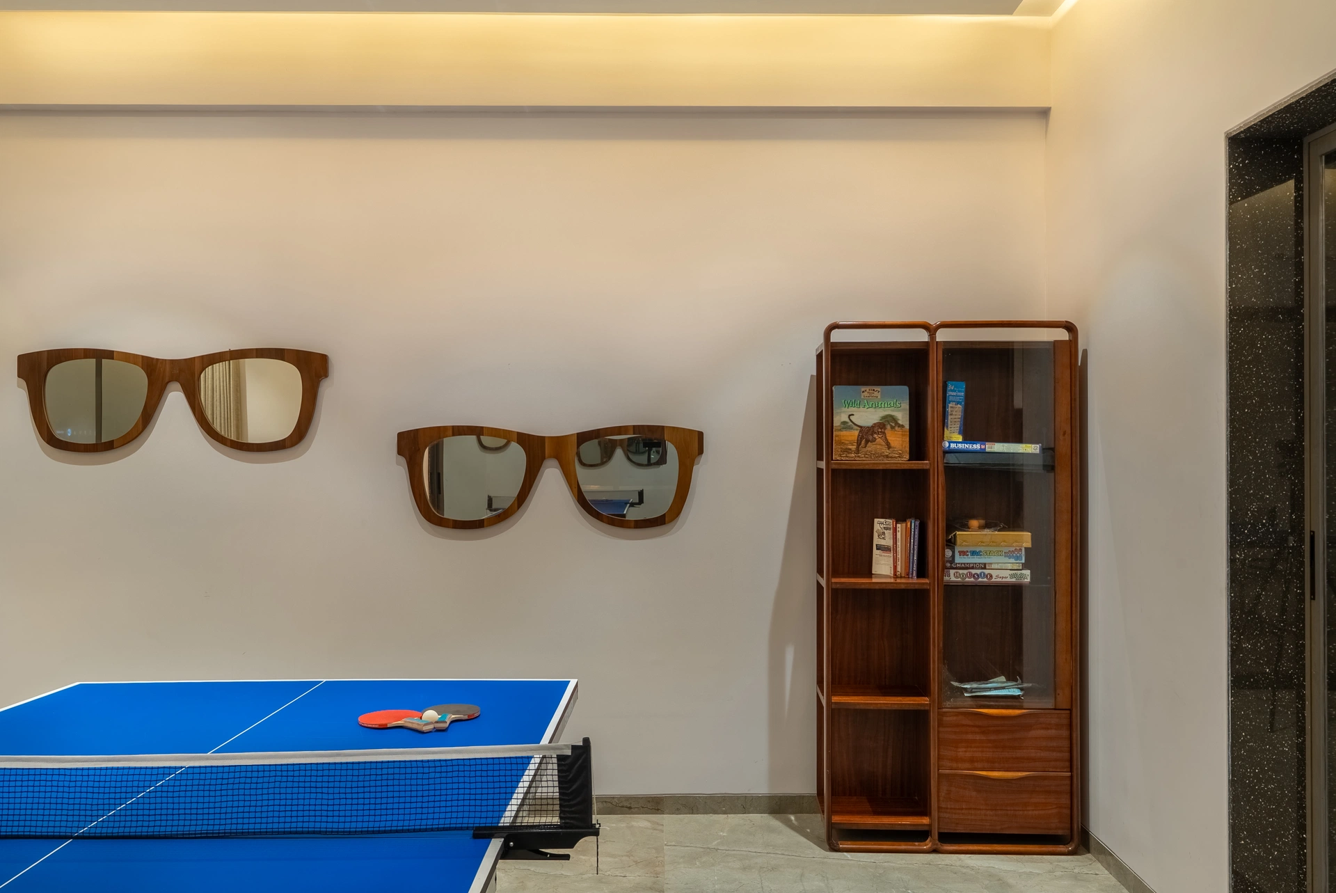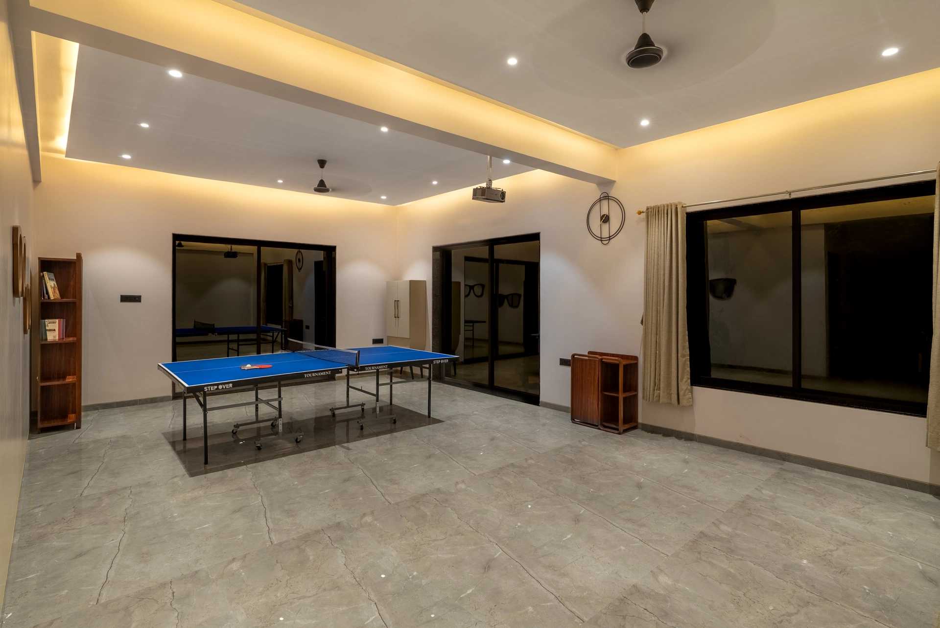 - The upper-level living room has table tennis, carrom and other board games as well as a projector system