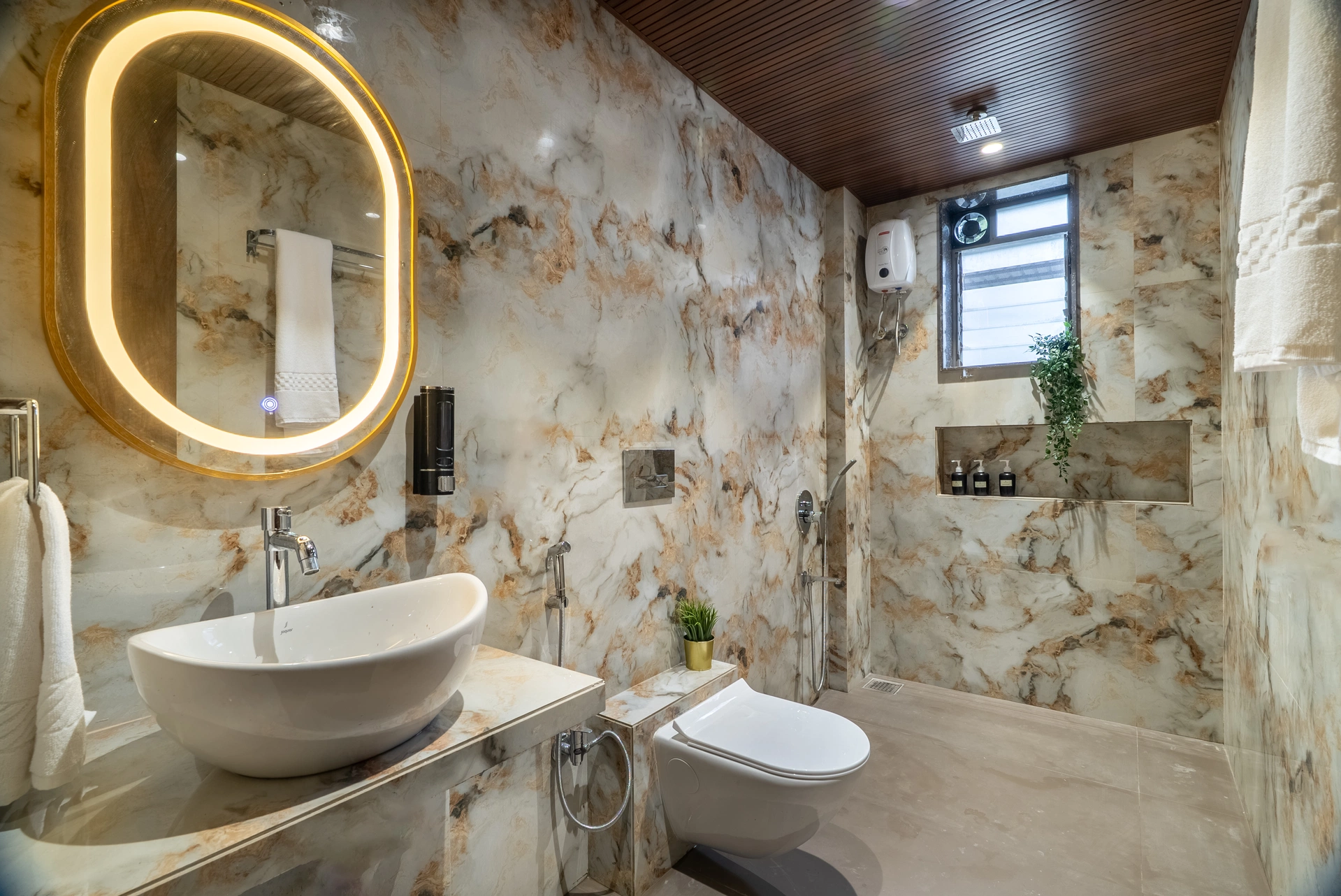 This luxury villa in Lonavala has a projector system along with a large flat-screen TV in the living area. You can host movie nights or watch reruns of your favourite series along with your friends and family.