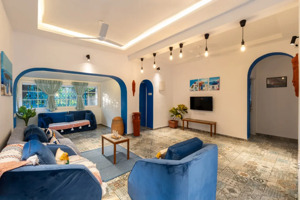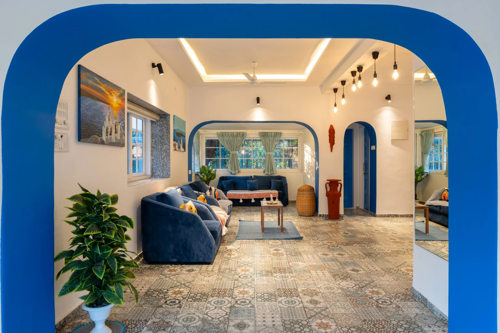 Step into Casa Santorini and you’ll feel you’ve arrived at a sun-drenched Greek island home. A stunning Greek-inspired private villa in Lonavala, this 4-bedroom home captures the Mediterranean essence through the signature white and blue interiors. This Greek villa is within a secure gated society in Lonavala, assuring a layer of safety. It features 4 ensuite bedrooms, an indoor pool, multiple dining options, and spacious living areas along with Smart TV, WiFi and indoor games. A cosy cafe-style corner is also a chic addition to the space to enjoy your tea/coffee and snacks in peace.