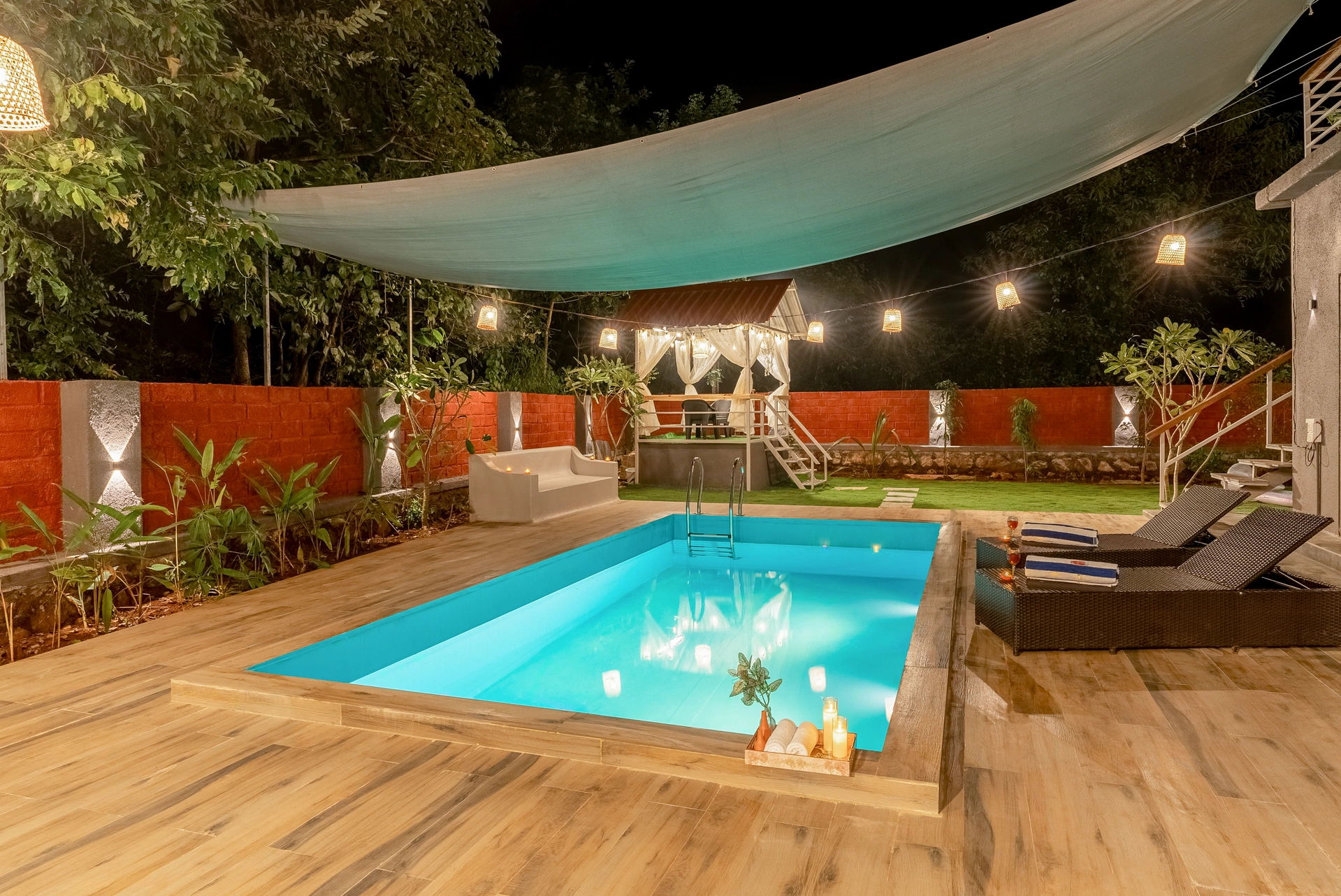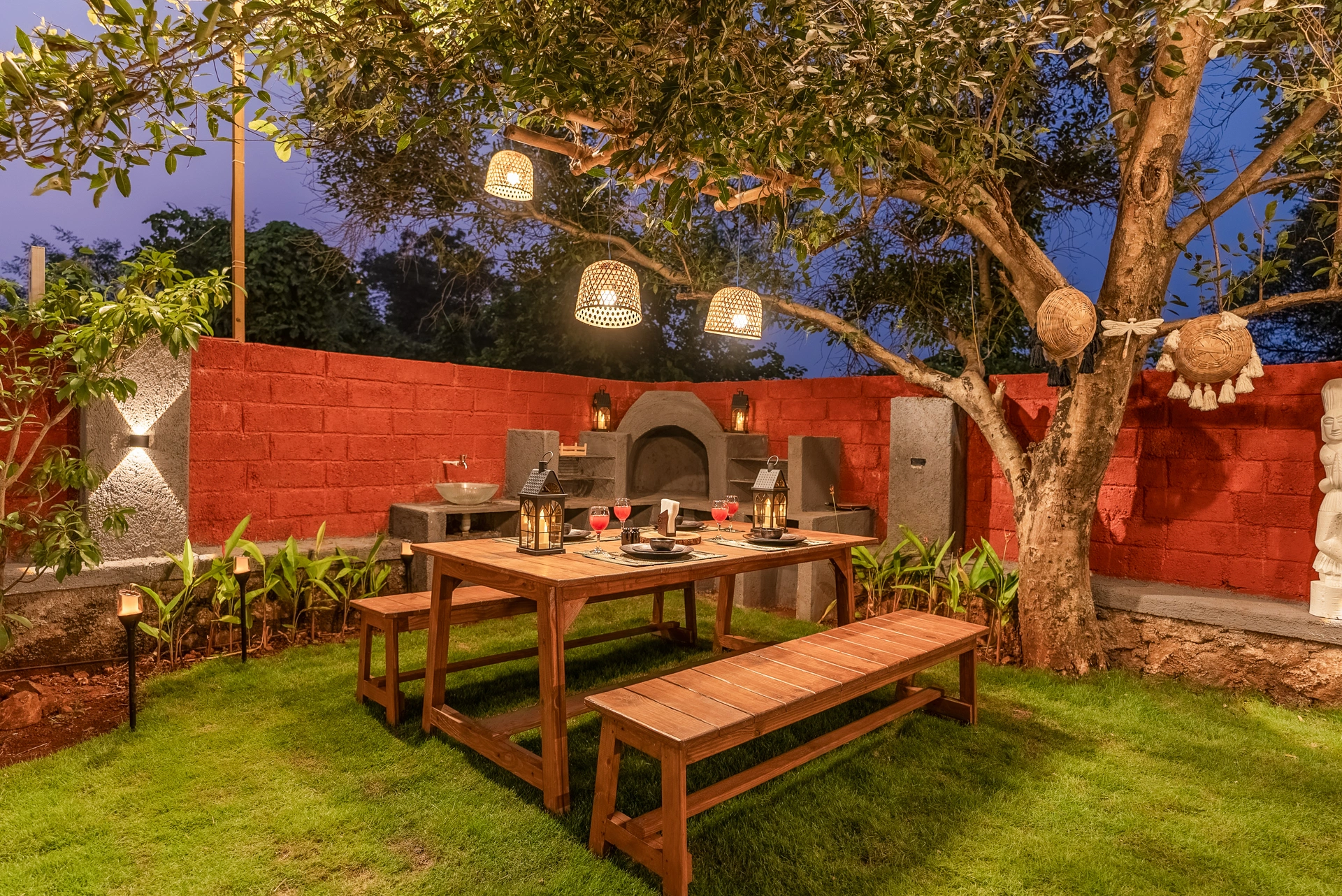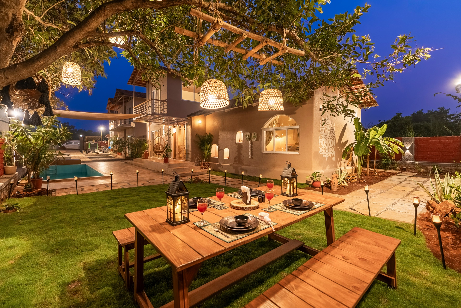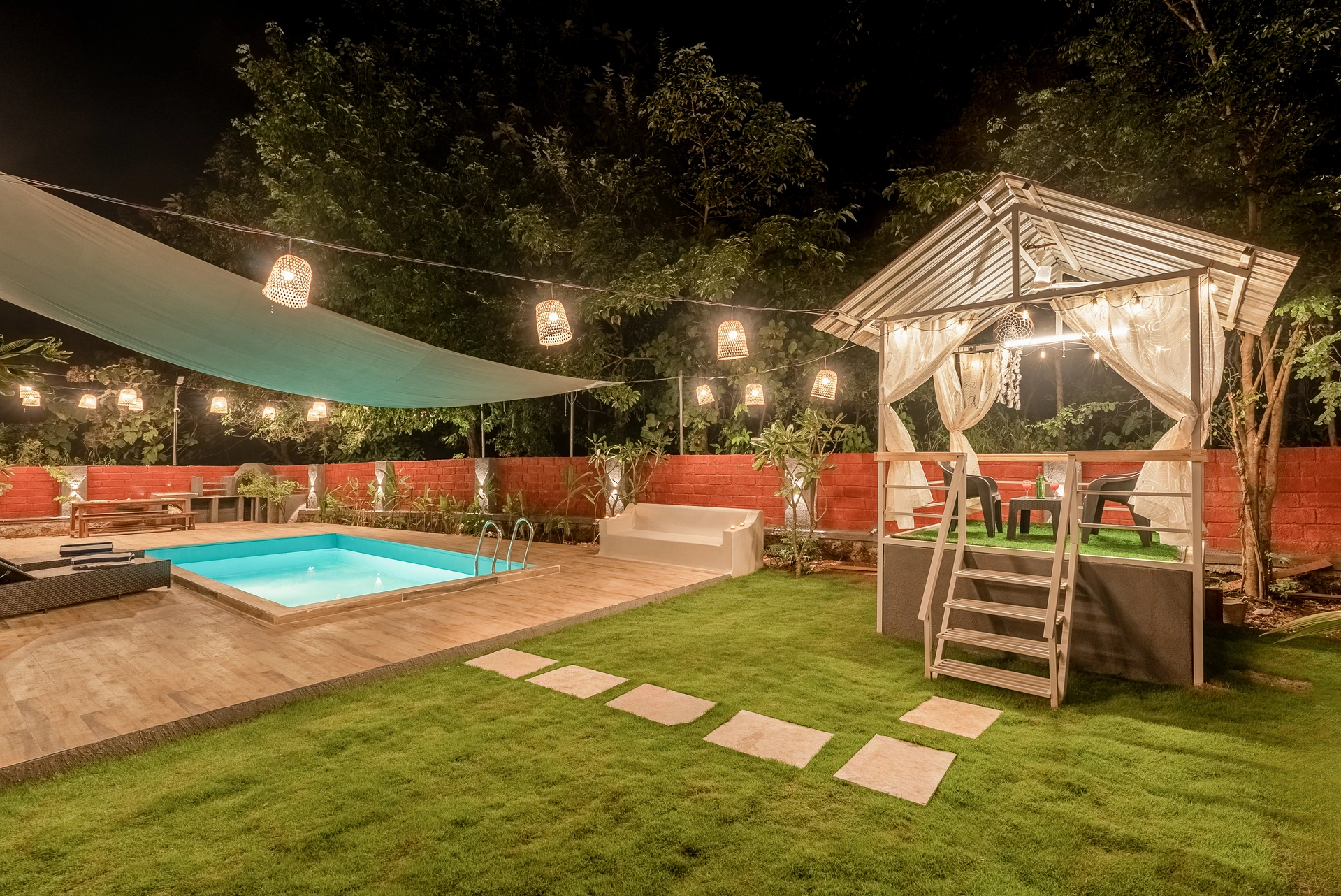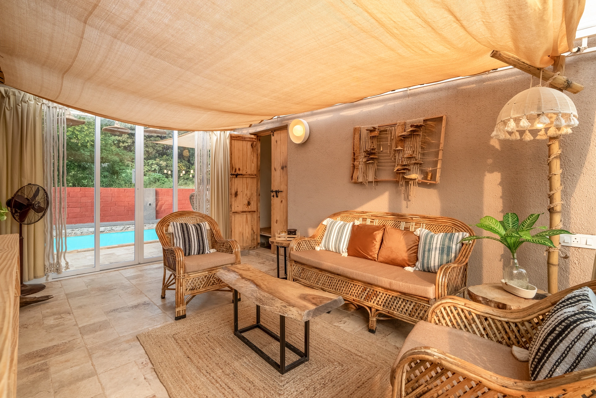 - A cosy cabana seating outside the 4BHK villa for intimate dinners.