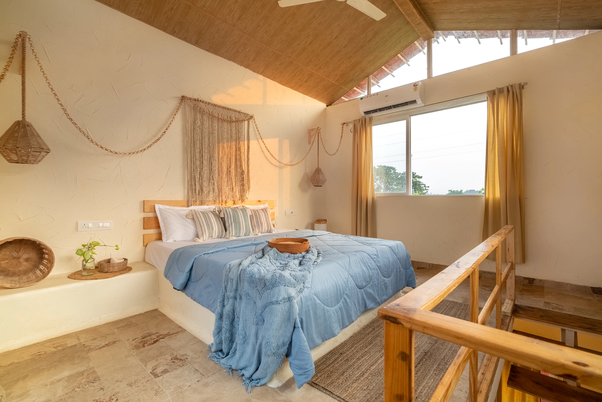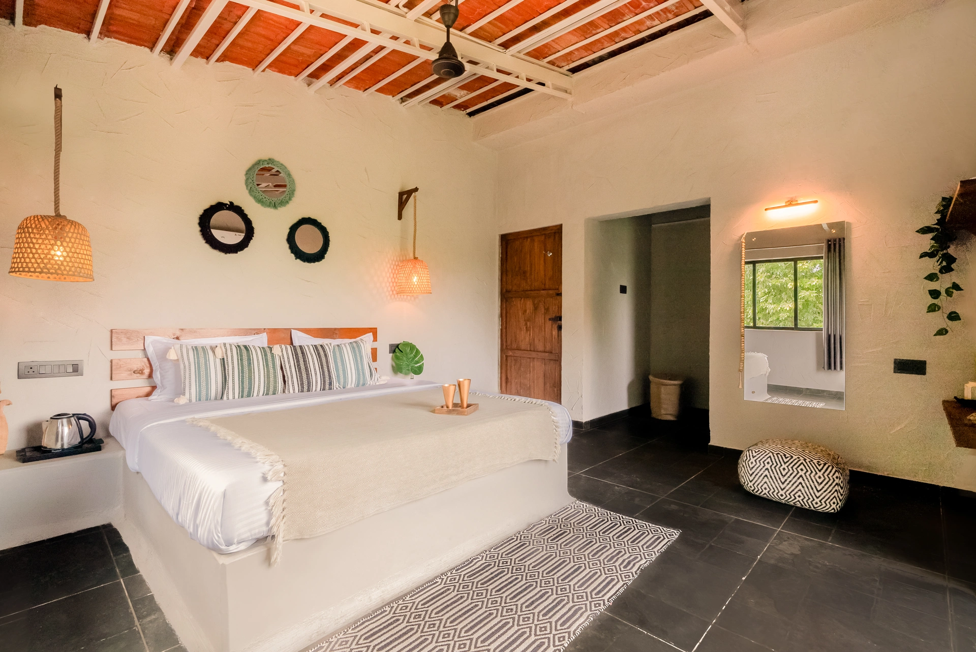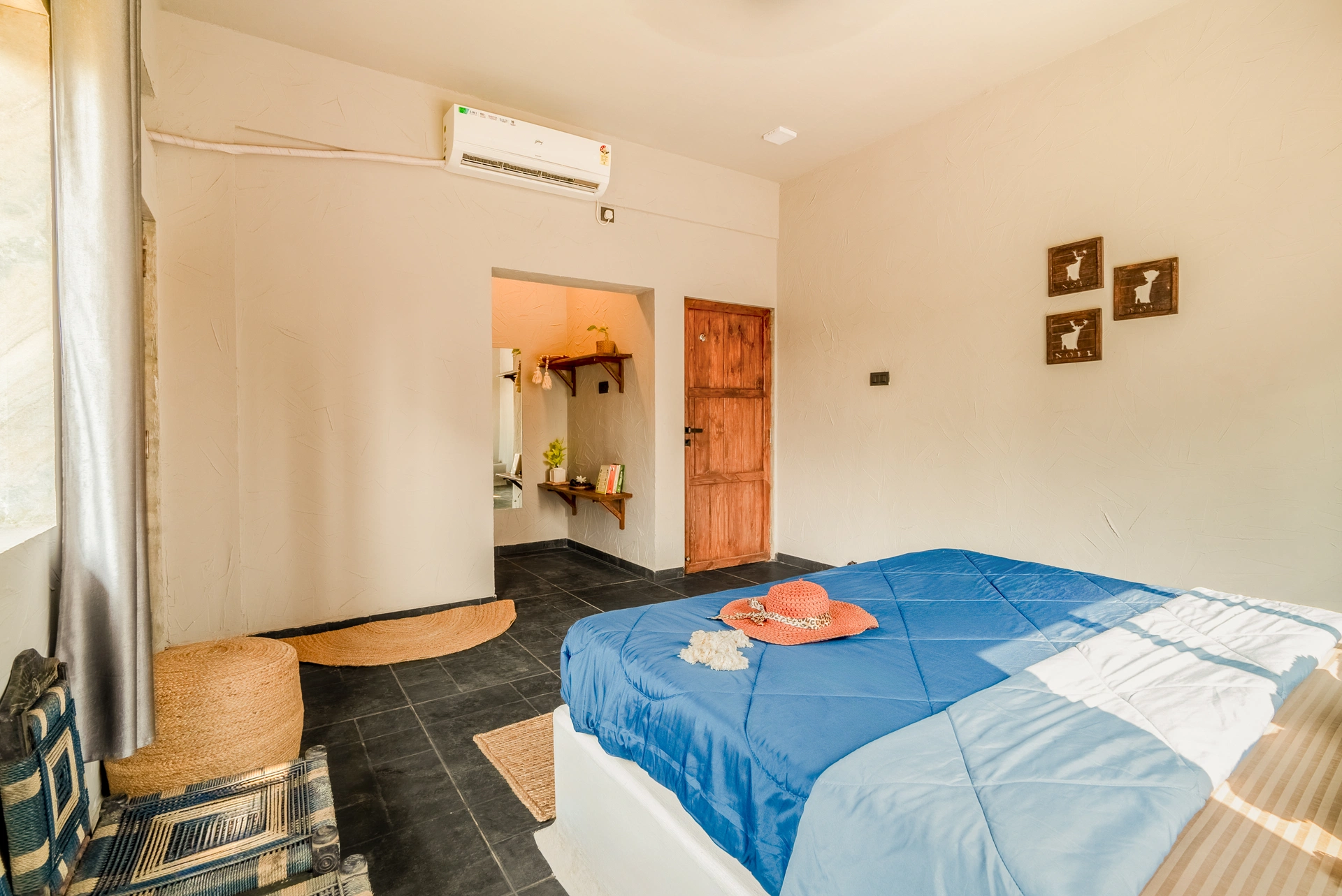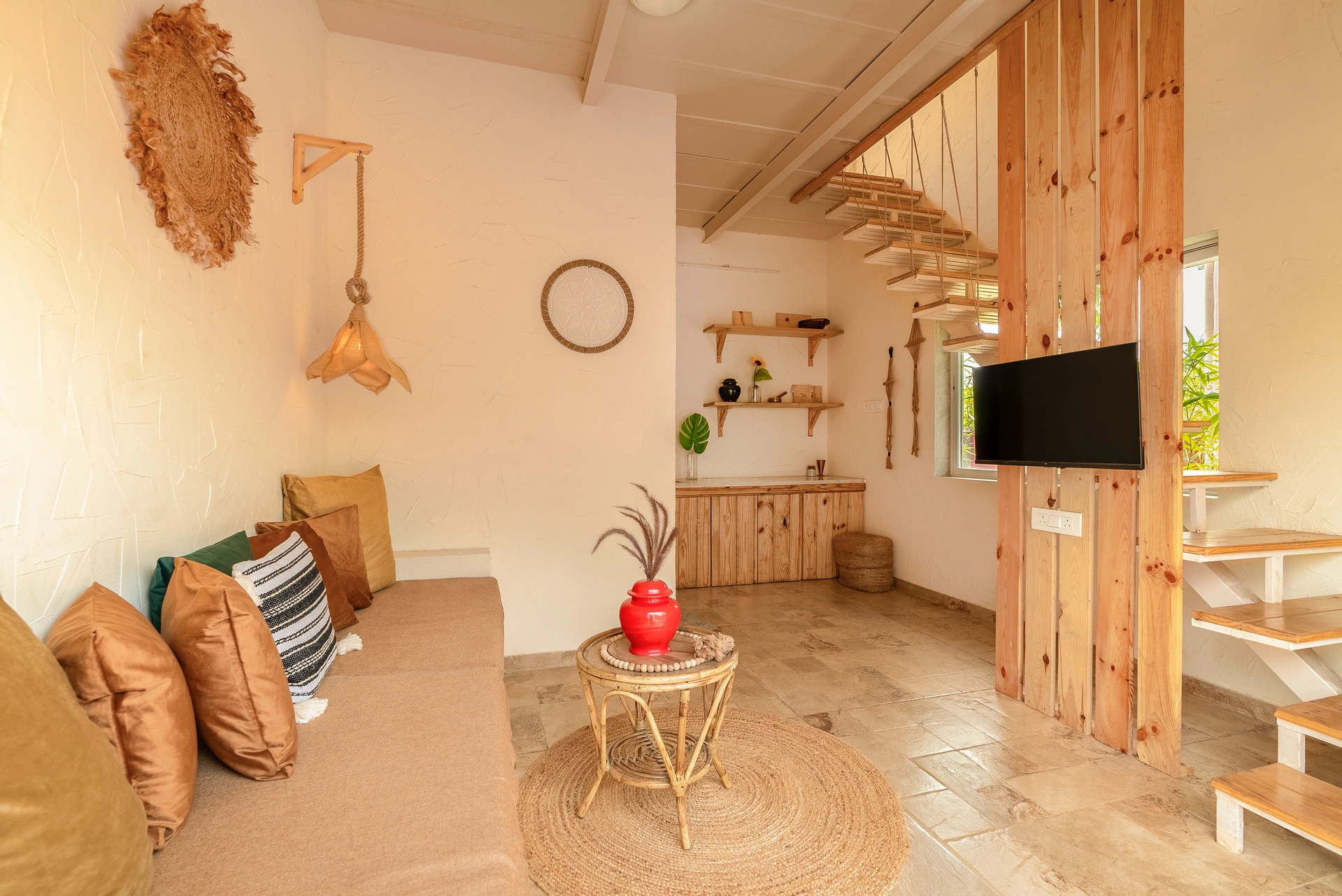 - Both 1BHK cottages have an air-conditioned bedroom and a small living area.