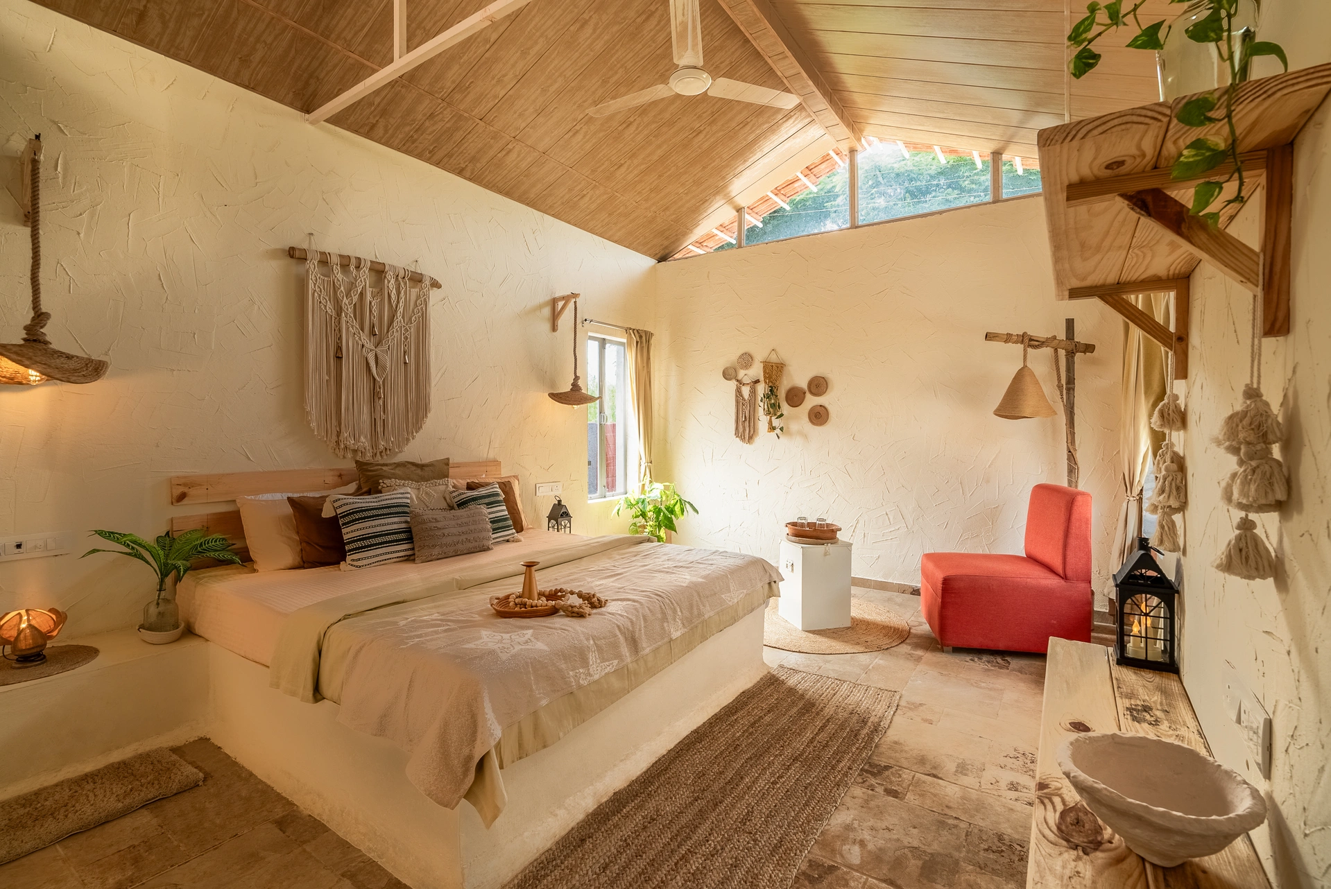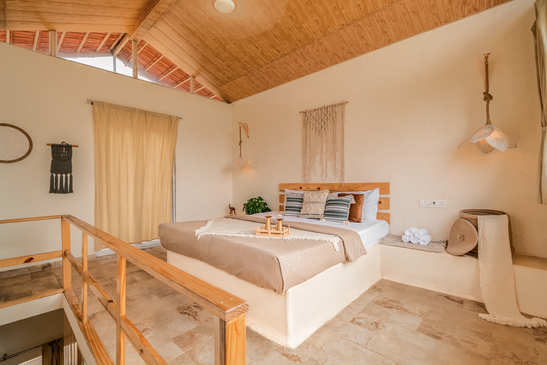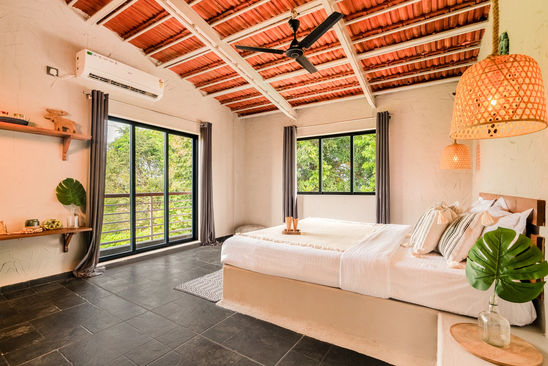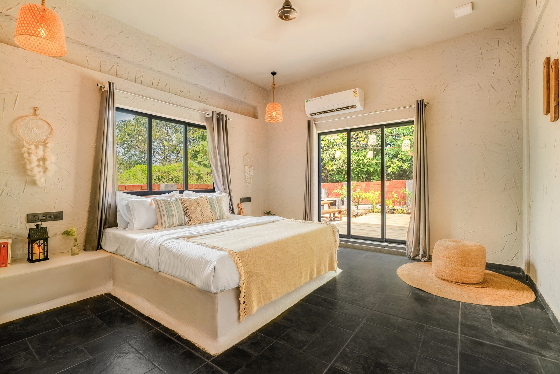 - Both 1BHK cottages have an air-conditioned bedroom and a small living area.