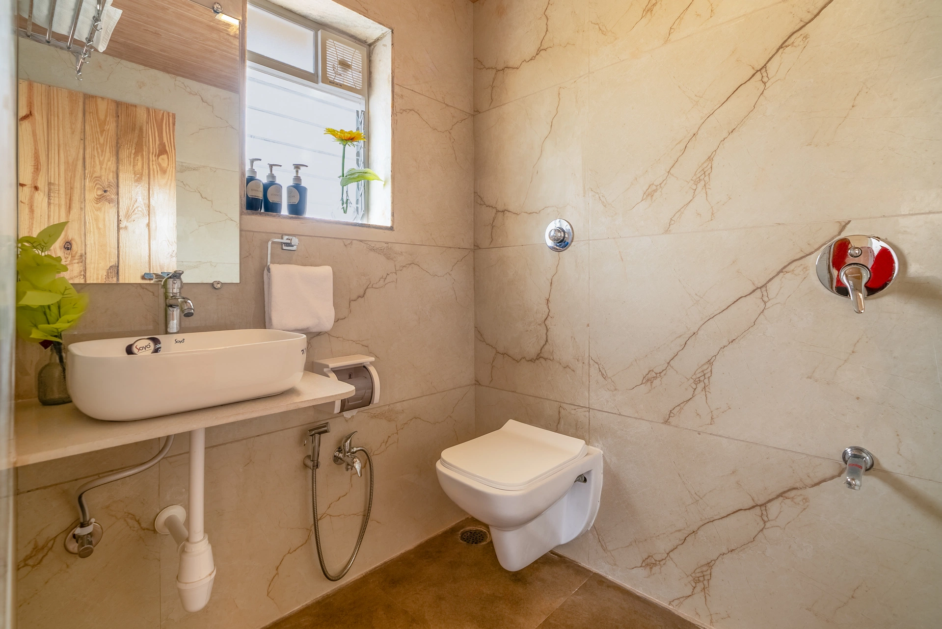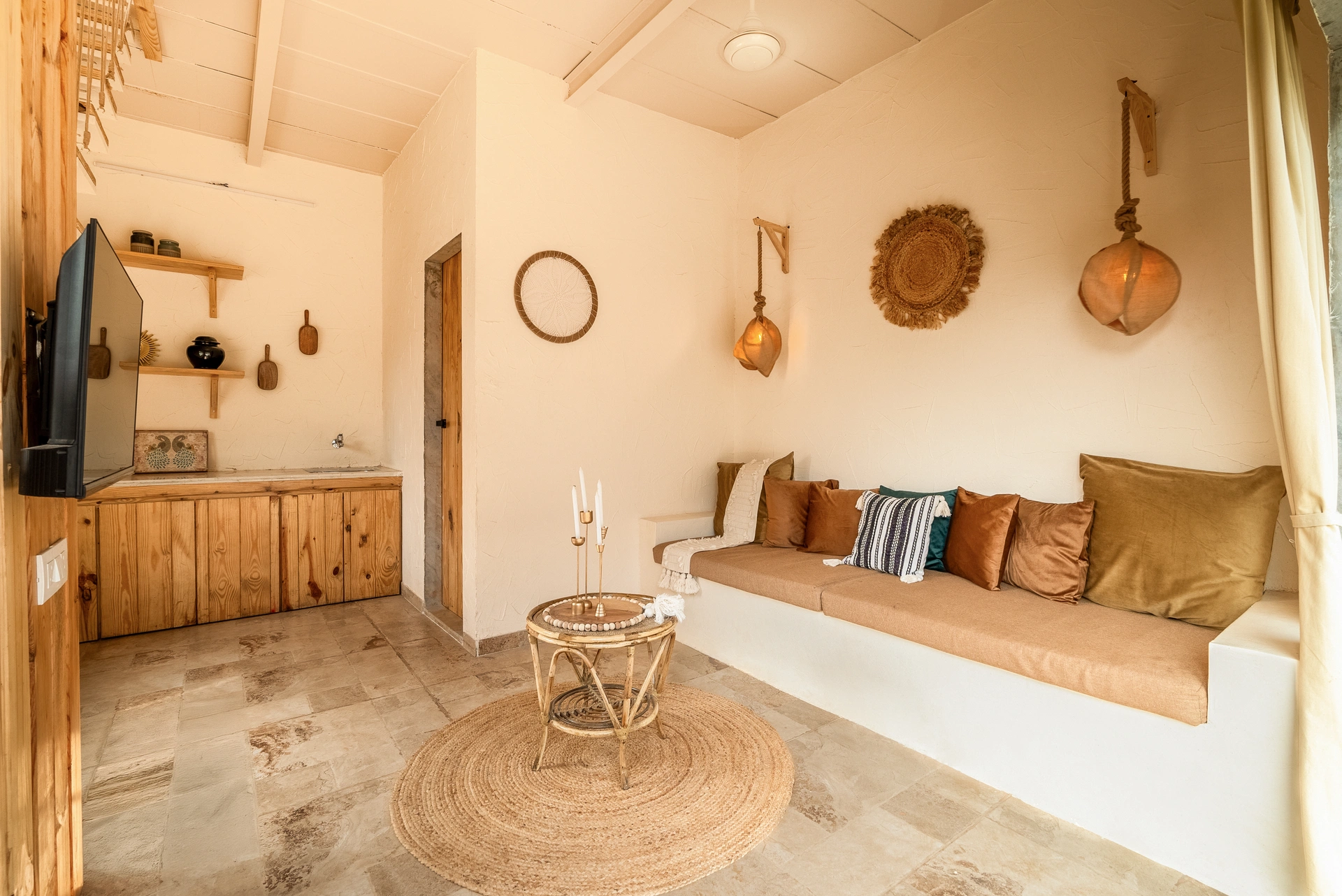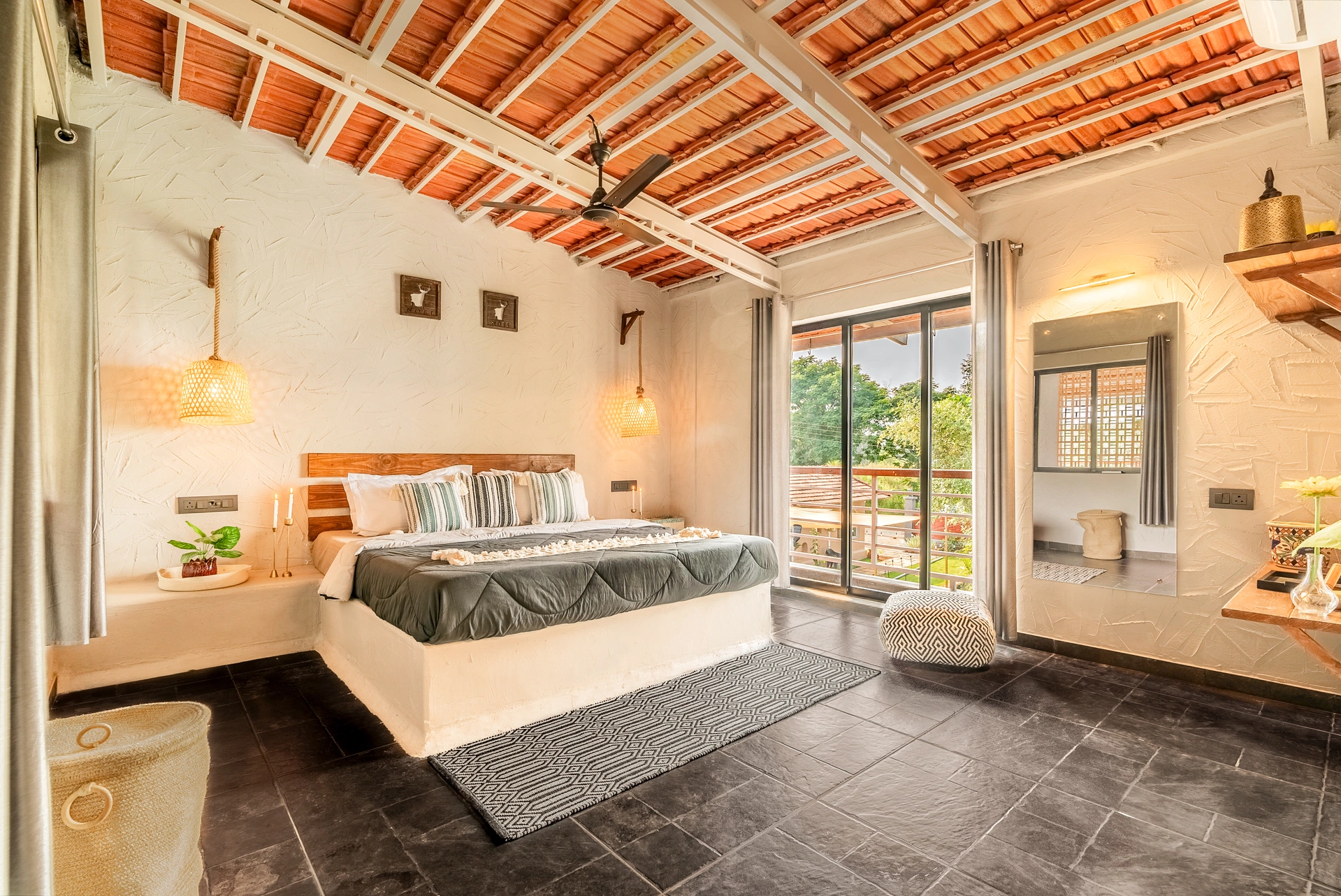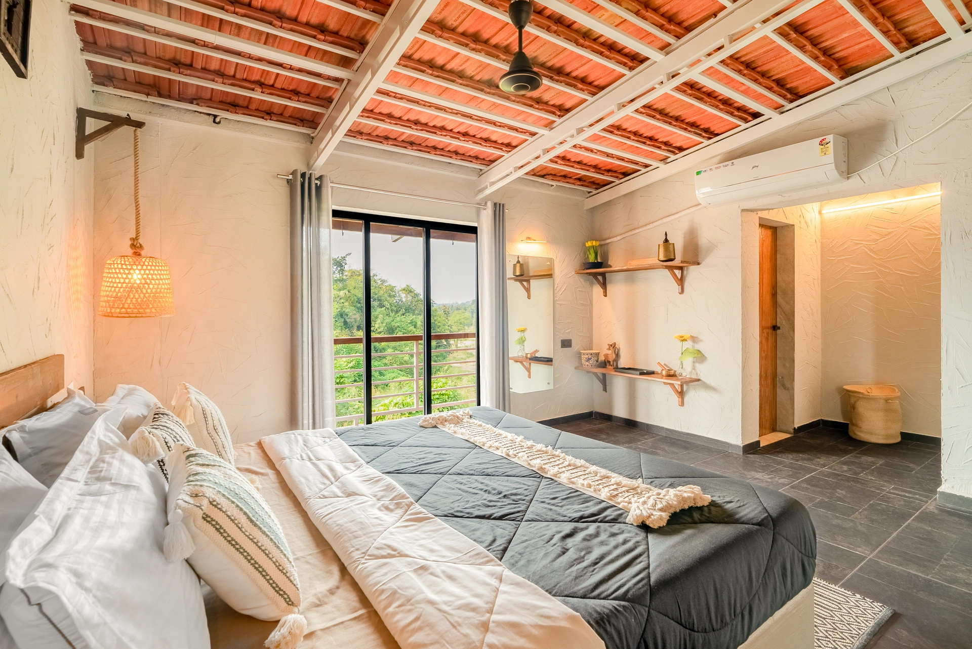 - Both 1BHK cottages have an air-conditioned bedroom and a small living area.